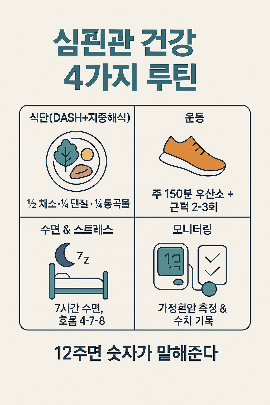Cardiovascular management isn't a grand project. ‘Reduce salt and processed foods’, ‘Walk and do strength training consistently’, ‘Sleep well’—just do these three things for 12 weeks, and both your numbers and condition will change. Start by saving tonight's grocery shopping and tomorrow's walking schedule to your calendar.