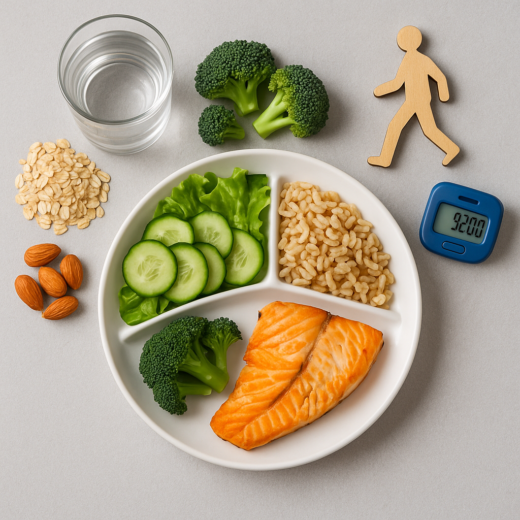 - Aerobic exercise 150 minutes/week (brisk walking, cycling, swimming)
