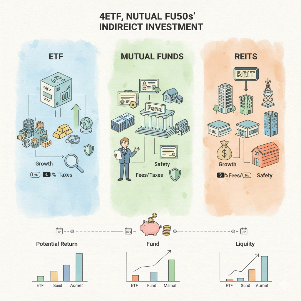 This article compares and analyzes the pros and cons, investment methods, and tax structures of ETFs, funds, and REITs, tailored to the perspective of 40-50s investors, presenting the optimal indirect investment strategy aligned with your investment style and goals.