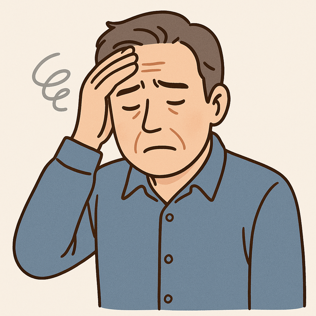 At this age, natural declines in male hormone (testosterone) levels can lead to symptoms such as fatigue, reduced muscle strength, and mood swings.