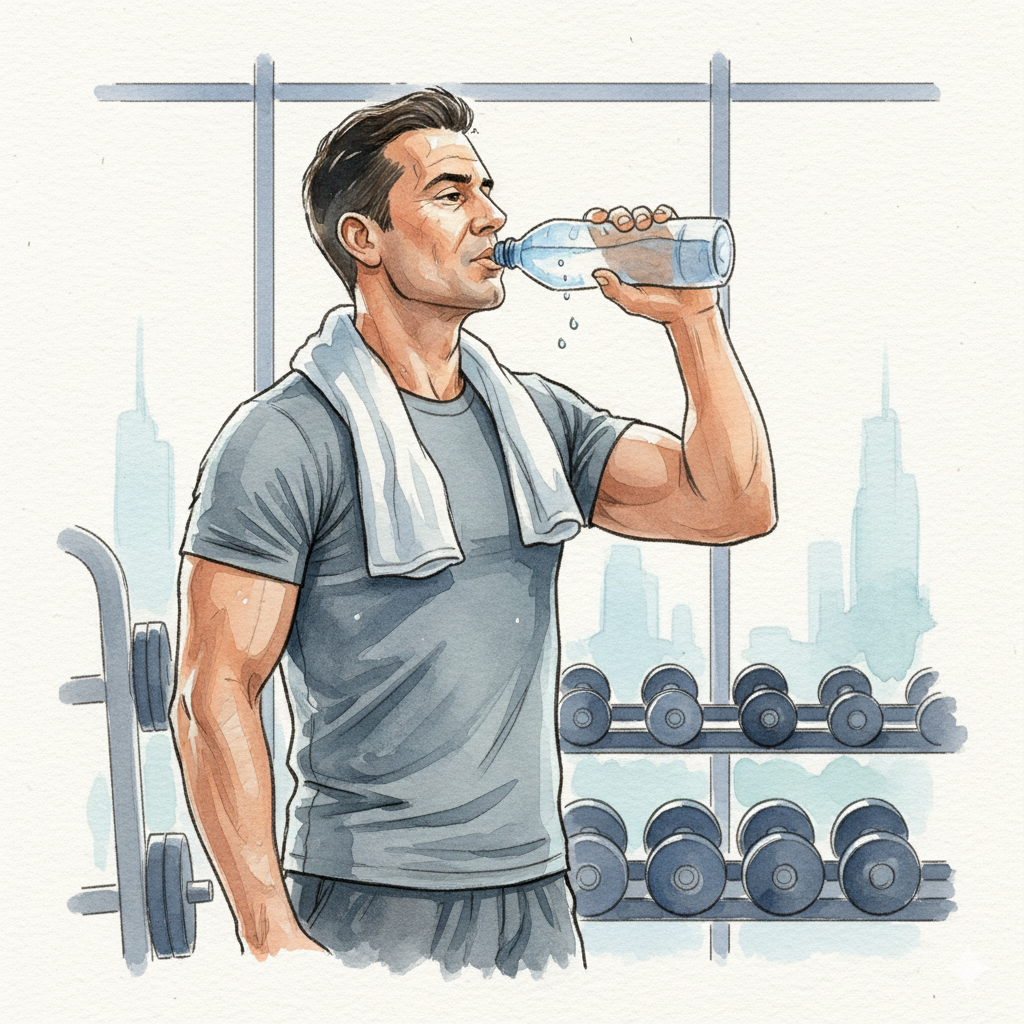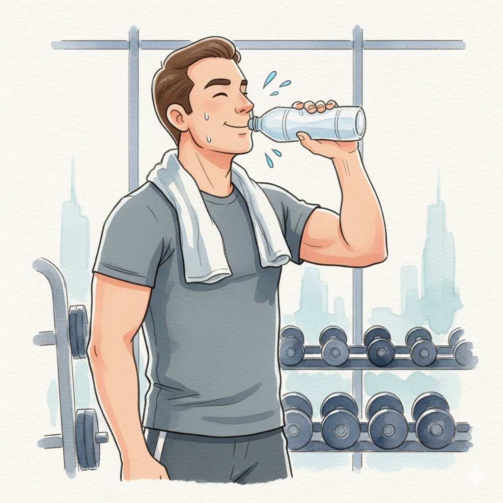 If you sweat profusely for over an hour or are in a hot environment, sodium and potassium replenishment is necessary. Commercially available isotonic drinks are convenient but may be high in sugar. A light homemade alternative is also good: 1 litre of water + a pinch of salt (1–2g) + lemon juice + 1 teaspoon of honey. For long-distance activities like marathons, measure your weight before and after and replenish approximately 150% of the weight loss over 2–4 hours. Conversely, for daily walking or light strength training, water alone is sufficient. If using electrolyte supplements, choose products with ‘5–6% sugar or less’ to minimise stomach discomfort.