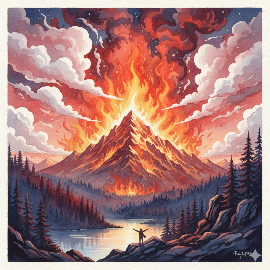 If you dream of a wildfire burning so large and bright it engulfs an entire mountain, this is interpreted as one of the most auspicious dreams. The larger and more unquenchable the fire, the stronger the implication that your business, wealth, or reputation will greatly expand and flourish in reality. The mountain symbolizes your organization, business foundation, or social standing, while the fire signifies powerful energy and vitality.