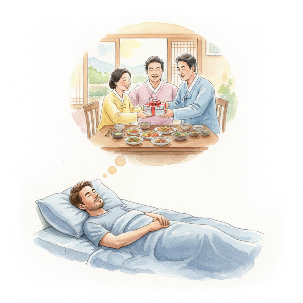 Dreams where you joyfully dine with deceased parents or receive precious gifts from them are interpreted as one of the most auspicious dreams. This is because food symbolizes vitality and wealth, while gifts signify tangible luck or property. This dream strongly suggests that your household's financial fortune will significantly rise or that all current endeavors will resolve smoothly, leading to universal success.