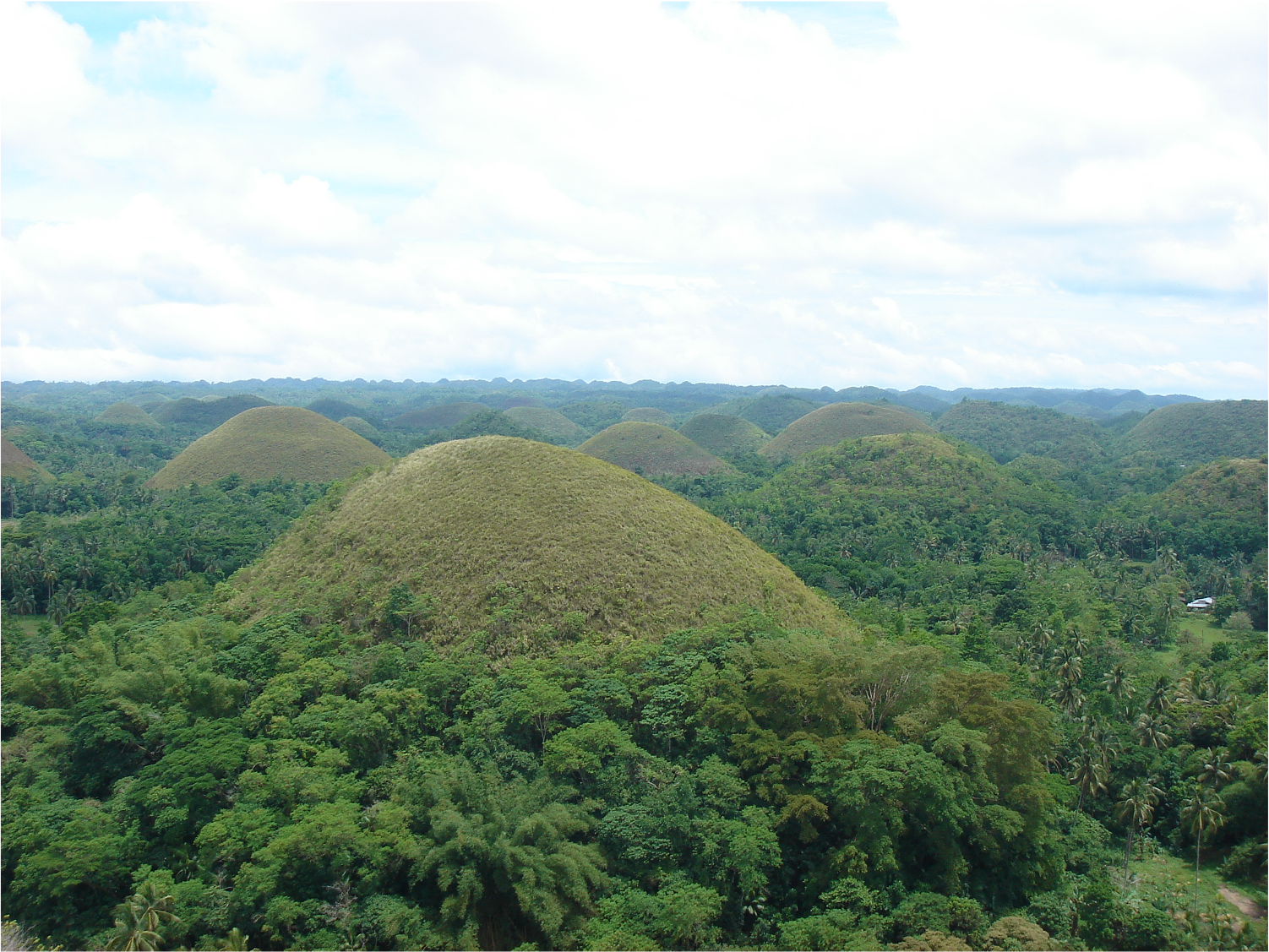초콜릿 힐은 바닷속 산호들이 융기되어 만들어진 자연지형입니다. 전망대에서 주변을 바라보면 정말 많은 봉우리들이 주변에 솟아 있습니다. 이름이 쵸콜릿 힐이라 불리는 이유는 저 봉우리들이 마치 키세스 초콜릿을 닮아서라고 하네요.